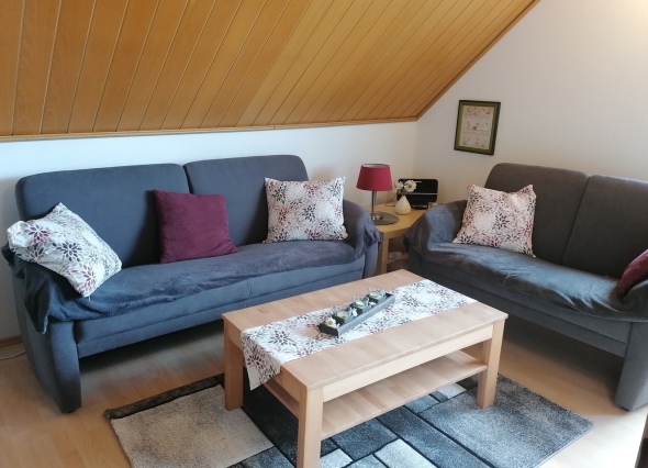 Im Obergeschoss unseres Hauses bietet die Wohnung bis zu 4 Personen ein wohnliches Heim für den Urlaub.